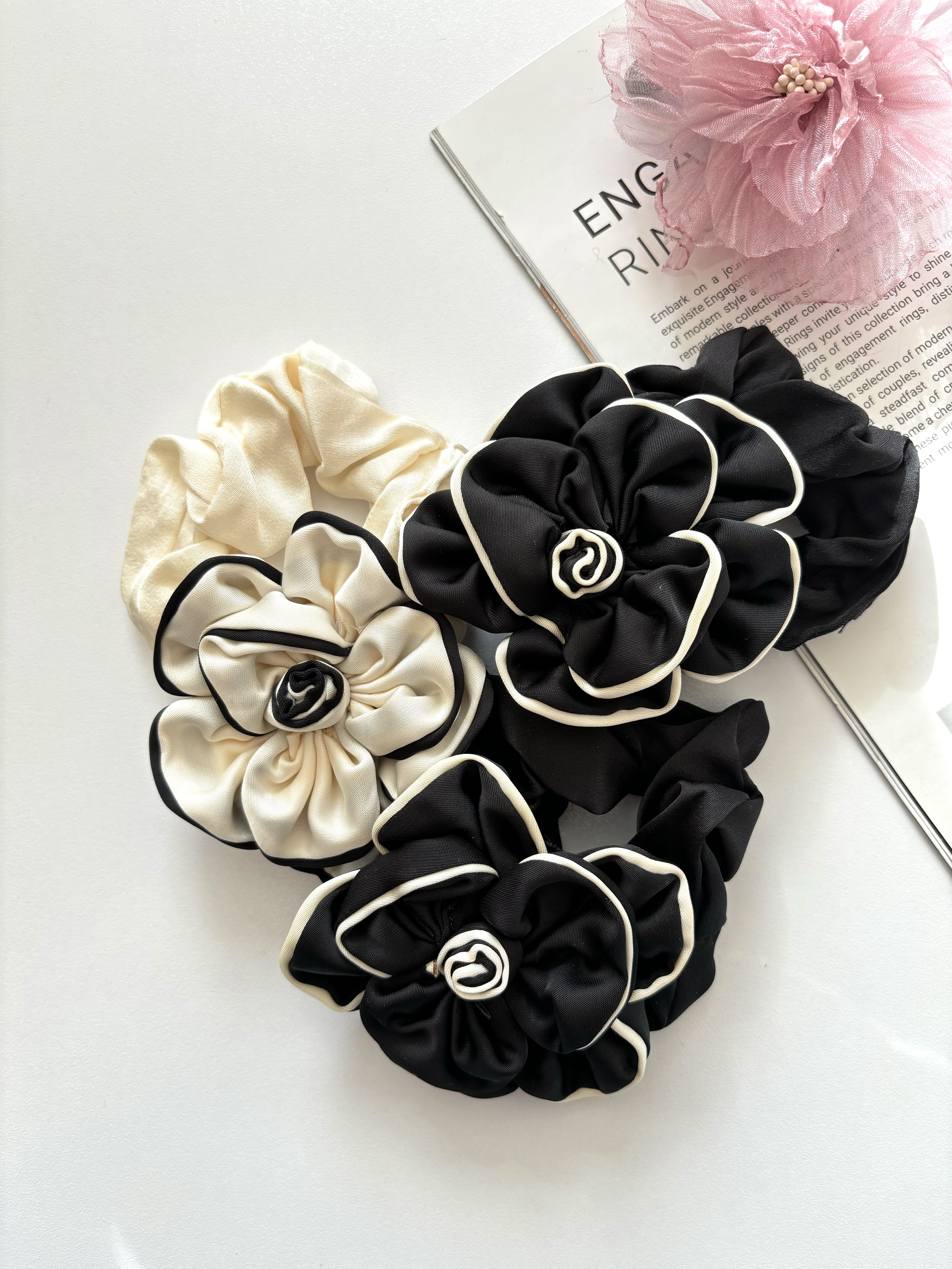 کش مو گل رز ساتن و موجود در دو رنگ مشکی و کرم میباشد گل و کش درهر رنگبندی هم رنگ هستند