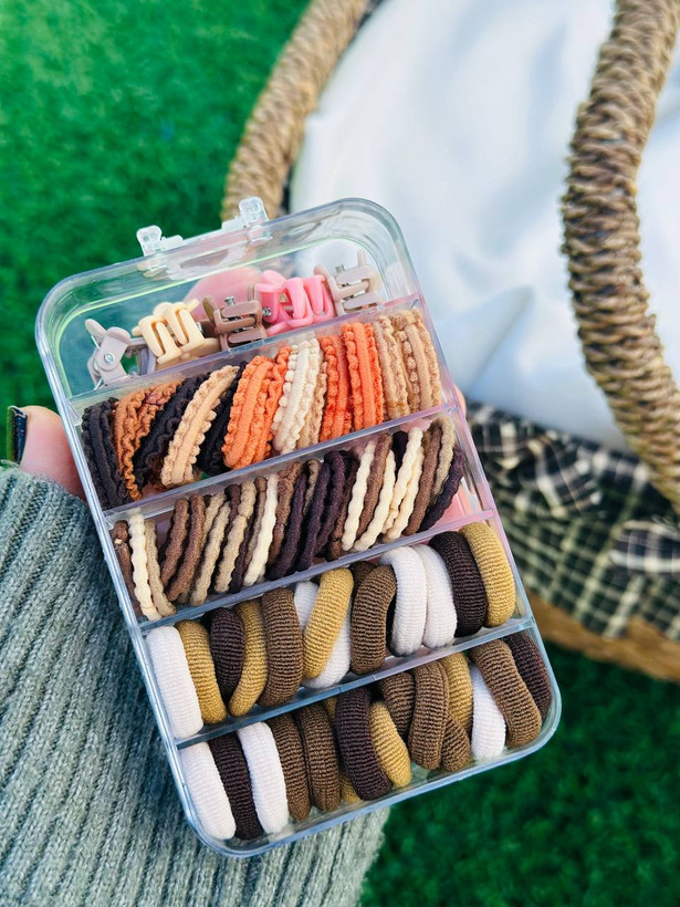 مینی کلیپس ها در سه طرح گل -تاج -ستاره هستند و رنگبندی کش طنابی در هر پک تفاوت است مثلا در بعضی از پک ها رنگ کرم یا آجری در کش های طنابی